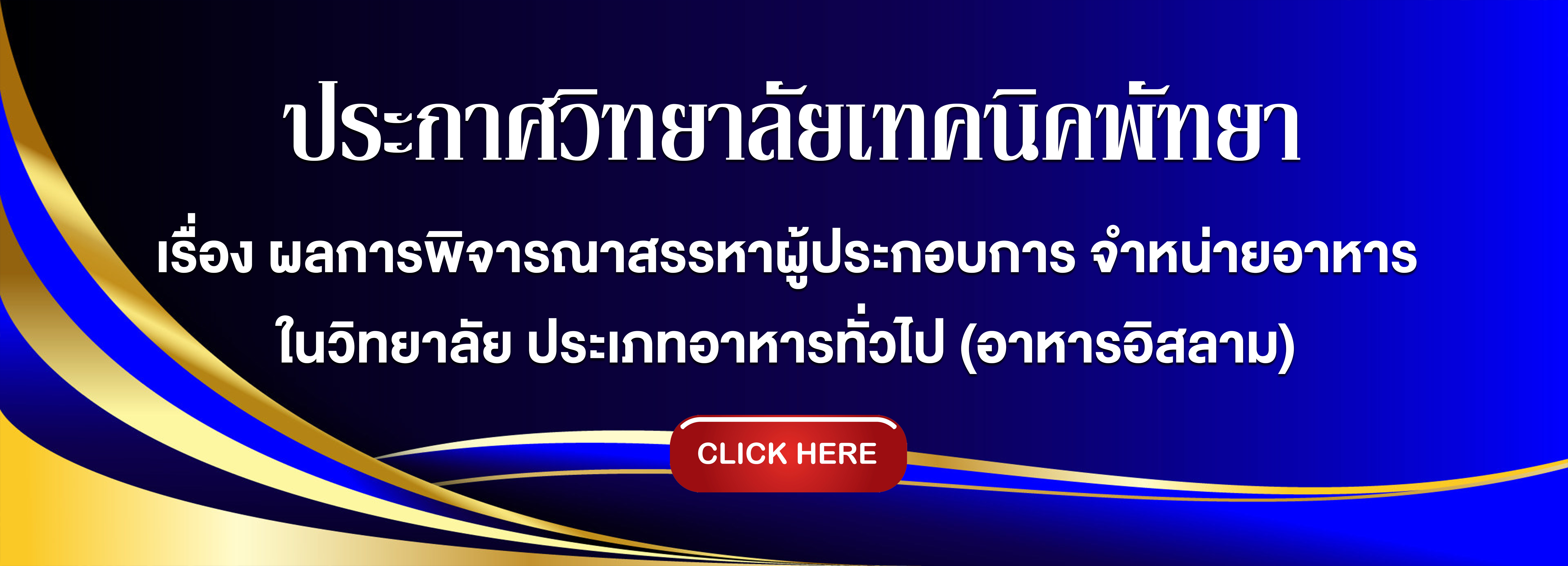 ประกาศ วิทยาลัยเทคนิคพัทยา เรื่อง ผลการพิจารณาสรรหาผู้ประกอบการ จำหน่ายอาหารในวิทยาลัย ประเภทอาหารทั่วไป (อาหารอิสลาม)