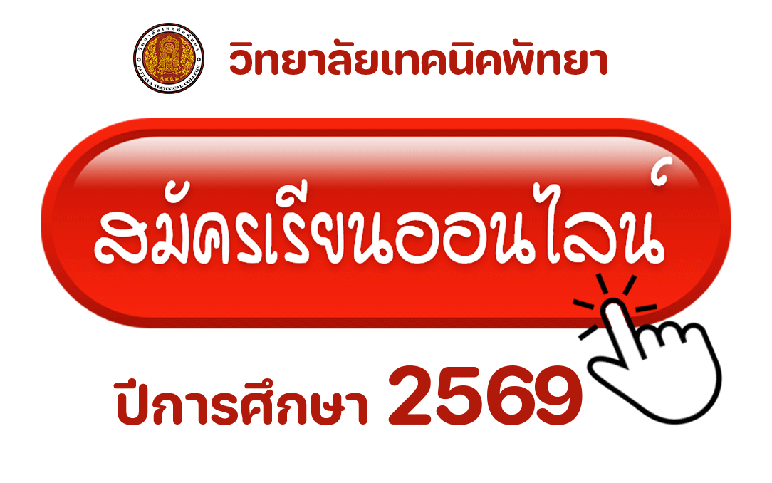 ประกาศ วิทยาลัยเทคนิคพัทยา เรื่อง กำหนดการรับสมัครนักเรียน เพื่อเข้าศึกษาต่อระดับประกาศนียบัตรวิชาชีพ (ปวช.) และ ระดับประกาศนียบัตรวิชาชีพชั้นสูง (ปวส.) รอบทั่วไป ประจำปีการศึกษา 2569