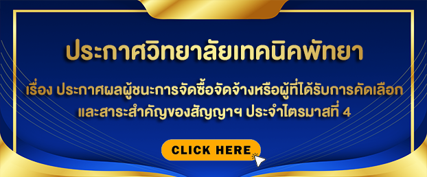 ประกาศวิทยาลัยเทคนิคพัทยา เรื่อง ประกาศผลผู้ชนะการจัดซื้อจัดจ้างหรือผู้ที่ได้รับการคัดเลือกและสาระสำคัญของสัญญาฯ ประจำไตรมาสที่ 4