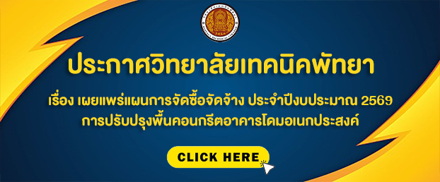 ประกาศวิทยาลัยเทคนิคพัทยา เรื่อง เผยแพร่แผนการจัดซื้อจัดจ้าง ประจำปีงบประมาณ 2569 การปรับปรุงพื้นคอนกรีตอาคารโดมอเนกประสงค์