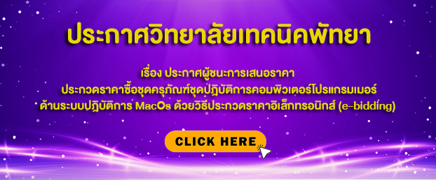 ประกาศวิทยาลัยเทคนิคพัทยา เรื่อง ประกาศผู้ชนะการเสนอราคา ประกวดราคาซื้อชุดปฏิบัติการคอมพิวเตอร์โปรแกรมเมอร์ ด้านระบบปฏิบัติการ MacOS หรือ Windows ด้วยวิธีประกวดราคาอิเล็กทรอนิกส์ (e-bidding)