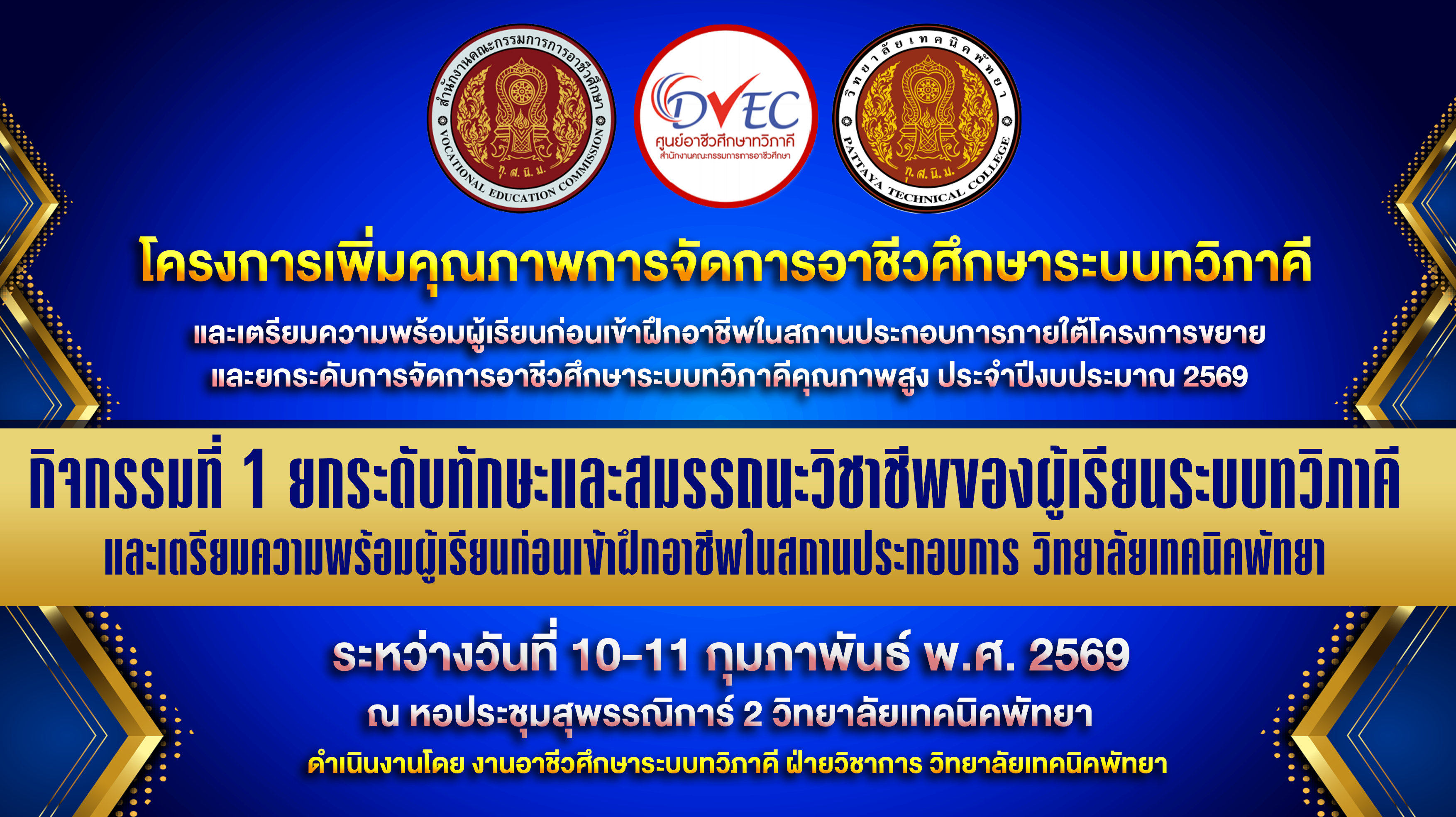 ประชาสัมพันธ์ วิทยาลัยเทคนิคพัทยา เรื่อง โครงการอบรมเชิงปฎิบัติการเทคโนโลยีงานเชื่อม วันศุกร์ที่ 20 กุมภาพันธ์ 2569 ณ แผนกวิชาช่างเชื่อมโลหะ วิทยาลัยเทคนิคพัทยา
